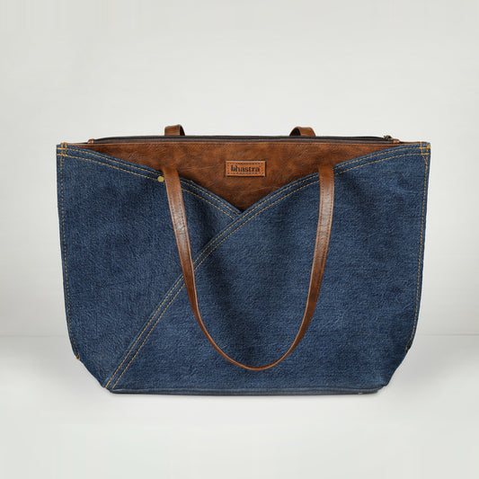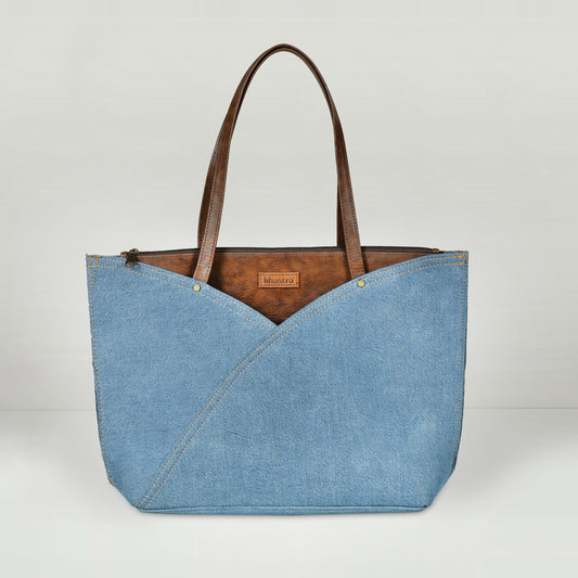 Deep Denim Tulip Tote Bag(With Vanity Pouch)