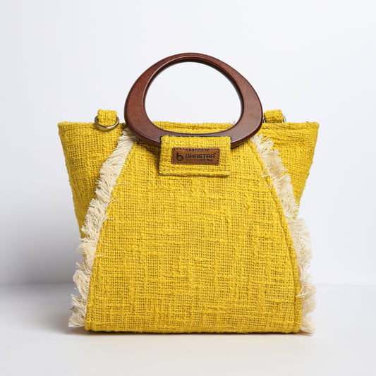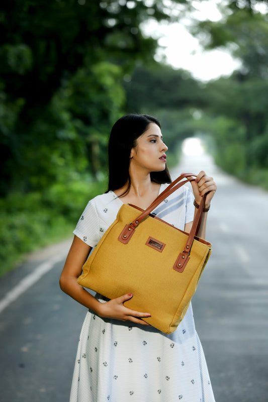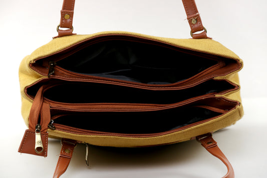 Mustard Three Pocket Tote Combo(Includes tote,Vanity Pouch and glass case)
