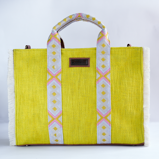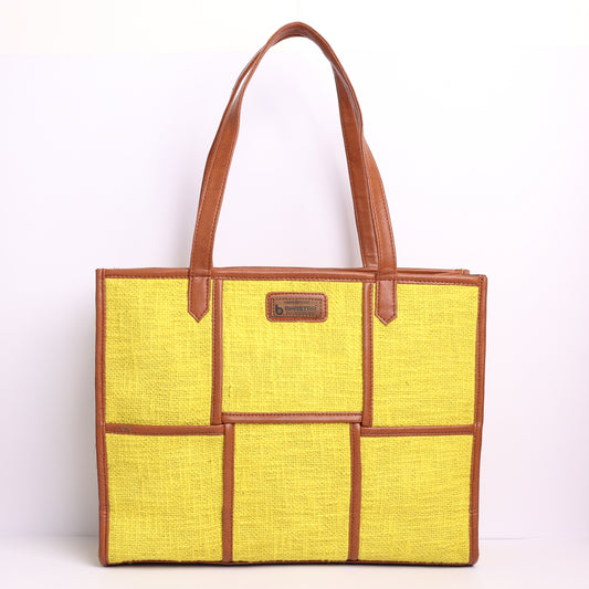 Yellow Ivy Tote(Medium)Combo-includes tote,vanity pouch and glass case