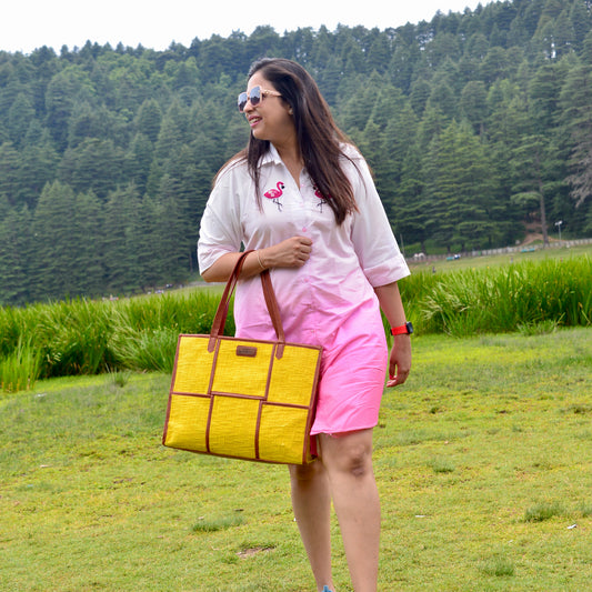 Mustard Messenger Tote Bag with Initial Customization