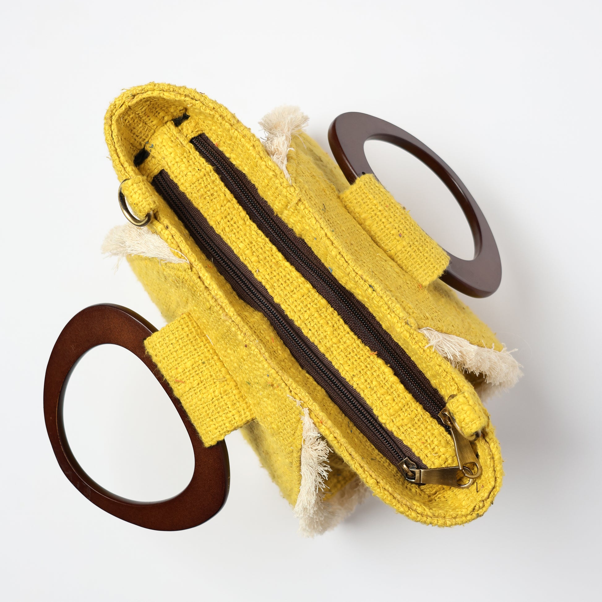 Ariel: ItĀ is a Boho style handbag symbolizing free spirit and pure soul.This beautiful and unique handbag has wooden handles and detachable /adjustable vegan leather sling belt making it extremely stylish and comfortable.It has two main zip compartments and inner zip pocket inside making it extremely spacious and stylish.